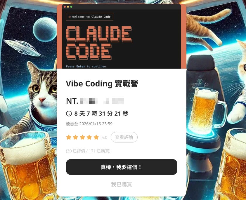 這段影片,同時也是我自己研發的 Vibe Coding 課程「Vibe Coding 實戰營」的前導影片,如果你有興趣的話,歡迎來參加,一起用社群的方式,學習 Vibe Coding。
