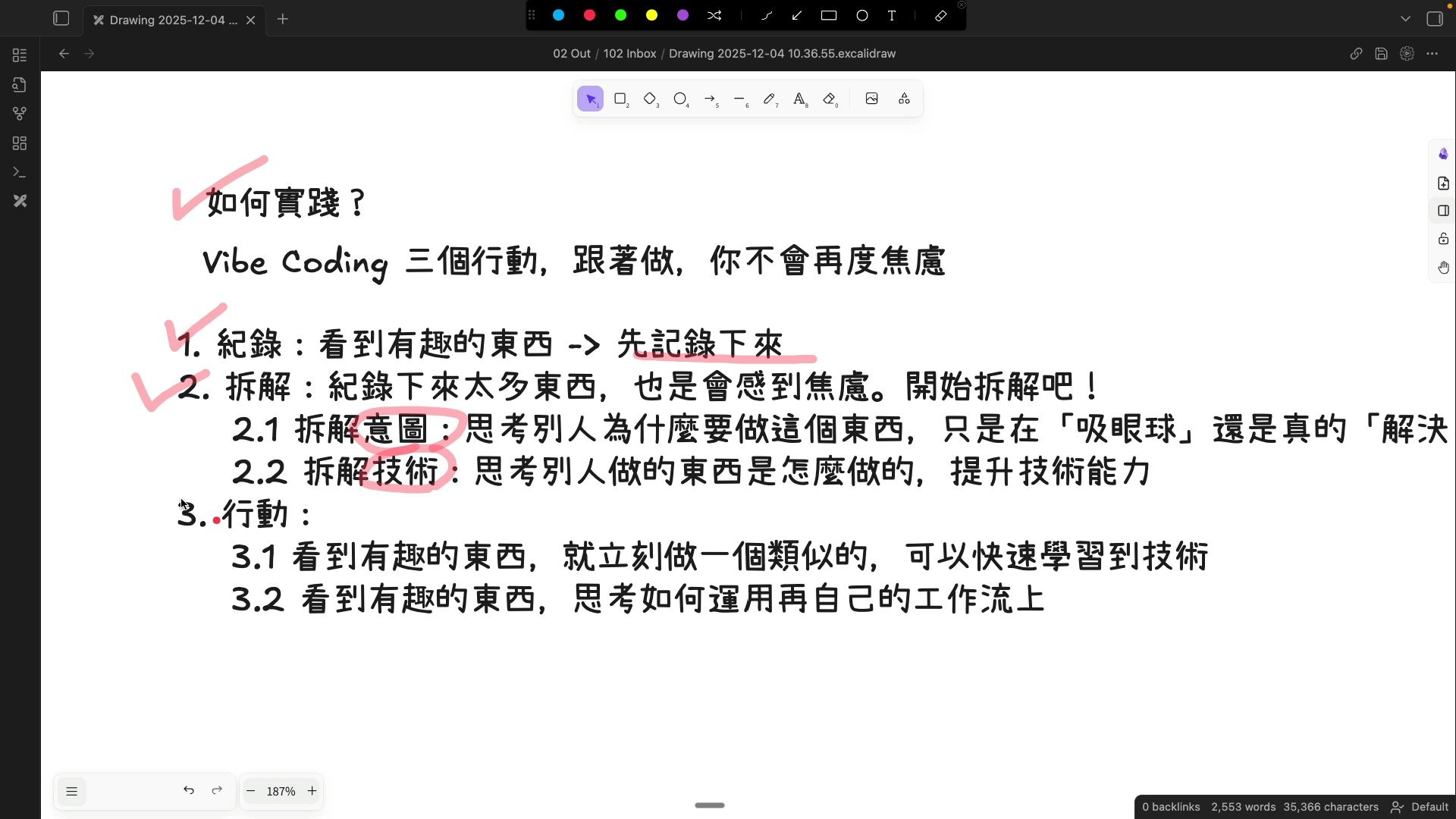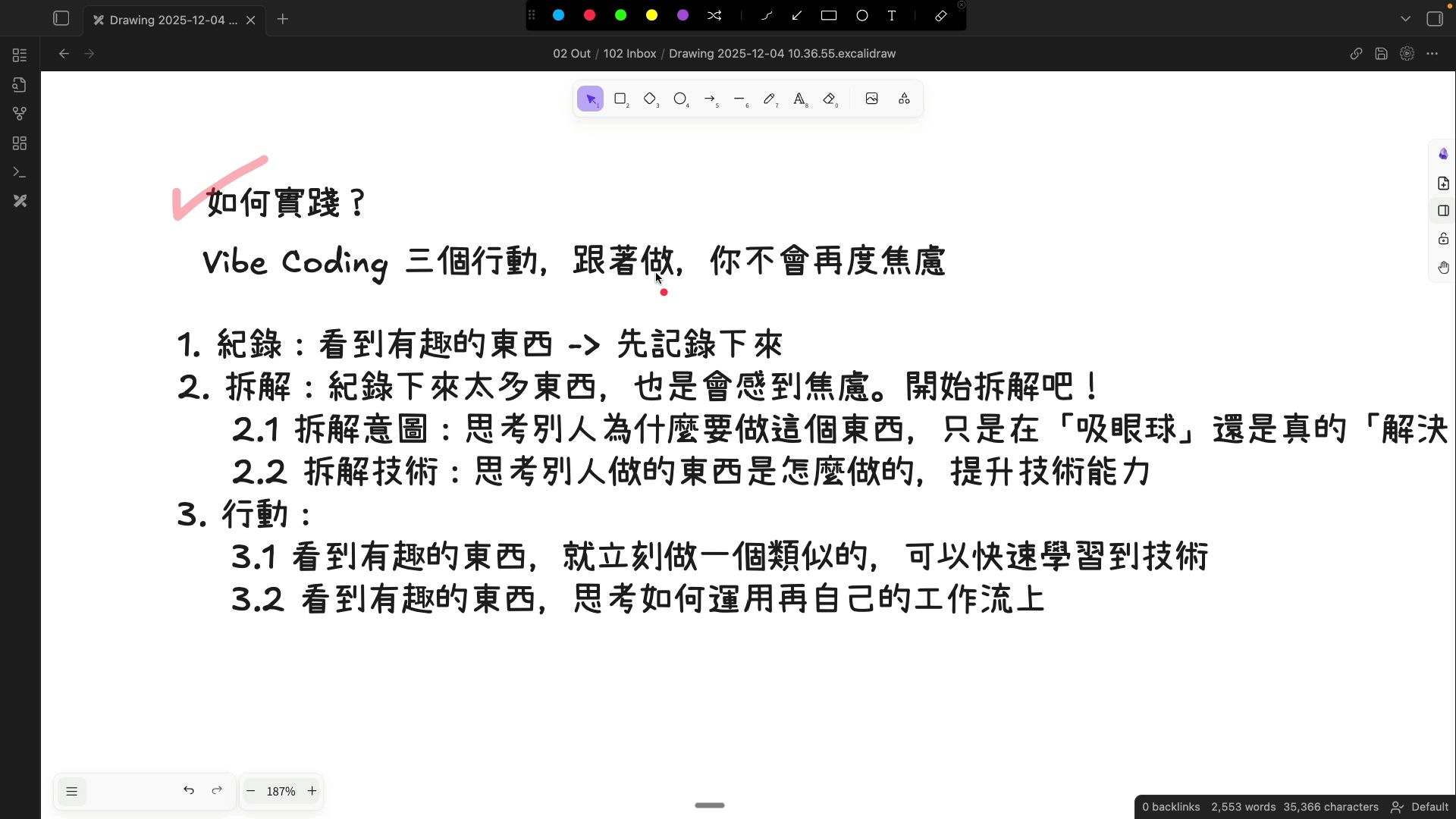如果你記錄了許多東西,但從未開始拆解,那麼你將無法理解這些東西背後的 真正用意。