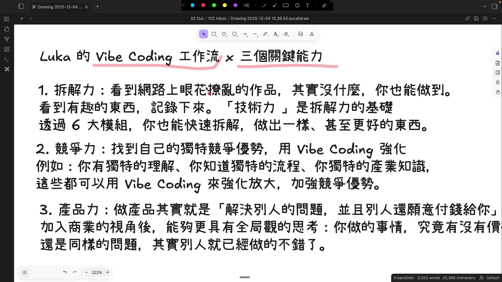 我將 Vibe Coding 工作流定義了三個關鍵能力,分別是:拆解力、競爭力 和 產品力。