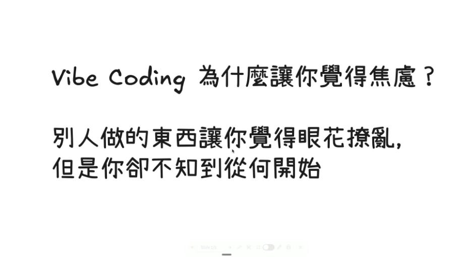 今天我要跟大家分享的是我自己提煉出的一套系統,讓你能夠在 Vibe Coding 的浪潮中,掌握先機,不焦慮。