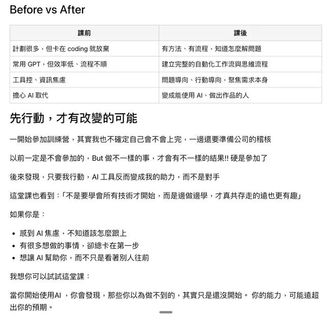 更詳細的資訊,歡迎點擊 Vibe Coding 實戰營 瞭解,限時特價中,錯過可惜!